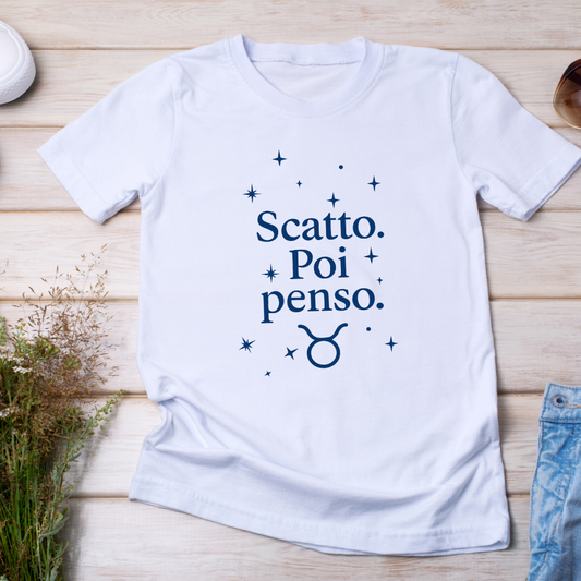 T-shirt maniche corte Collezione Zodiac & Scatta "Ariete - Scatto. Poi penso" Unisex