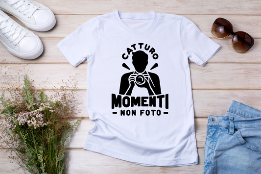 T-shirt maniche corte "Catturo Momenti, Non Foto" Donna
