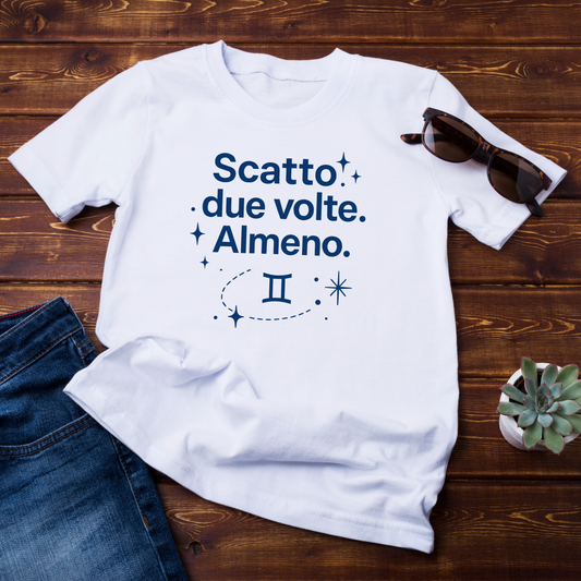 T-shirt maniche corte Collezione Zodiac & Scatta "Gemelli β Scatto due volte almeno ποΈπΈ" Unisex
