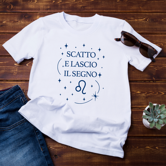 T-shirt maniche corte Collezione Zodiac & Scatta "Leone β Scatto e lascio il segno ποΈπΈ" Unisex